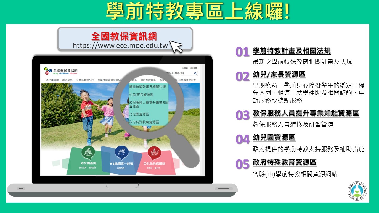 轉知:全國教保資訊網新增「學前特教專區」提供學前特殊教育相關資訊