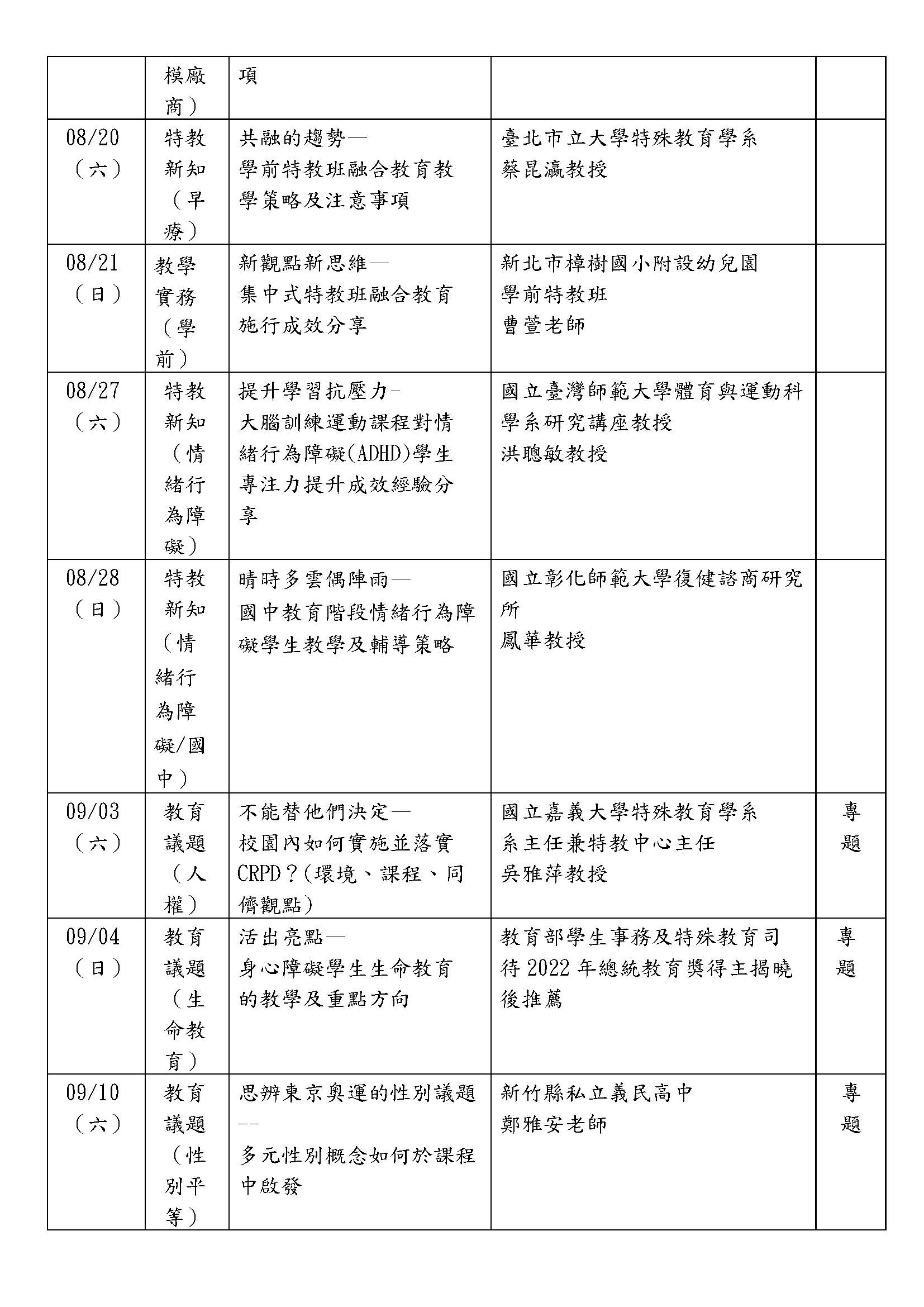 轉知國立教育廣播電臺製播111年7至9月之「特別的愛」特殊教育主題及播出日期表4-3