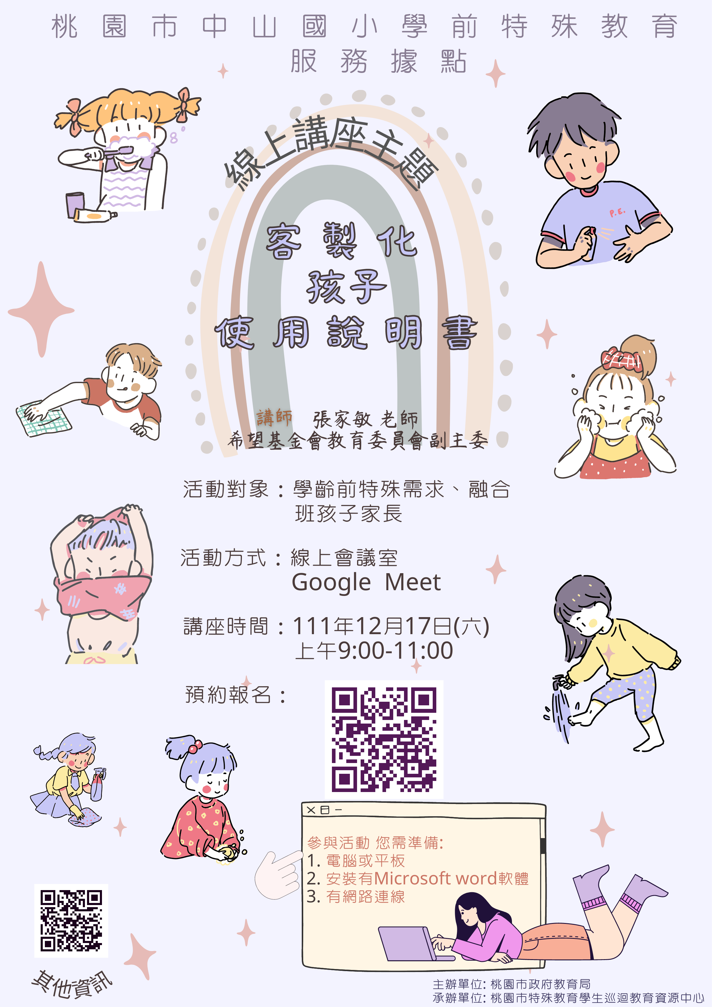 轉知:111學年度線上親子講座「客製化孩子使用說明書」