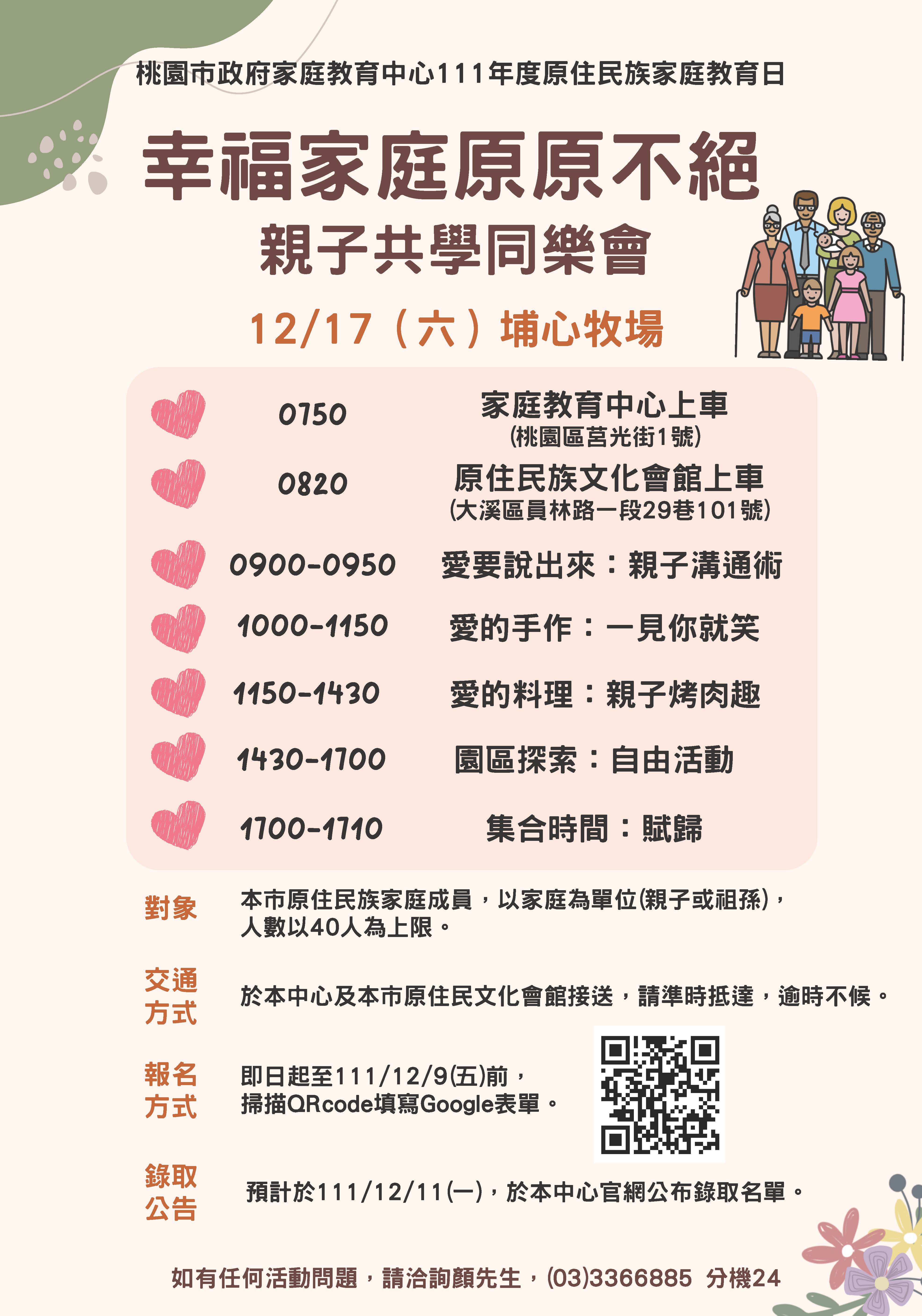 轉知:桃園市政府家庭教育中心辦理「幸福家庭原原不絕親子共學同樂會」