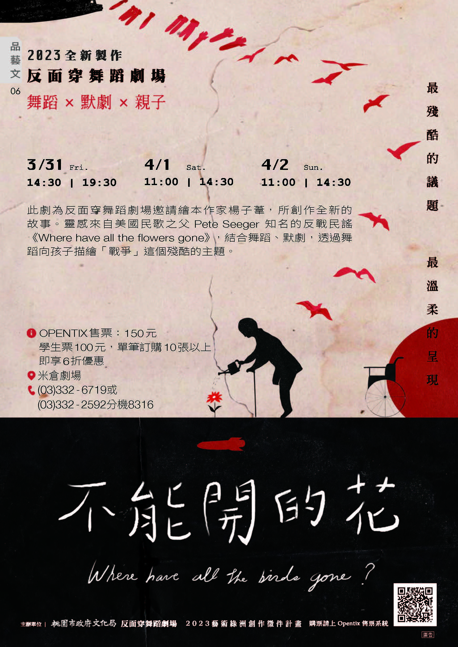 轉知:桃園市政府文化局辦理「2023 藝術綠洲創作徵件計畫-反面穿舞蹈劇場《不能開的花》」演出