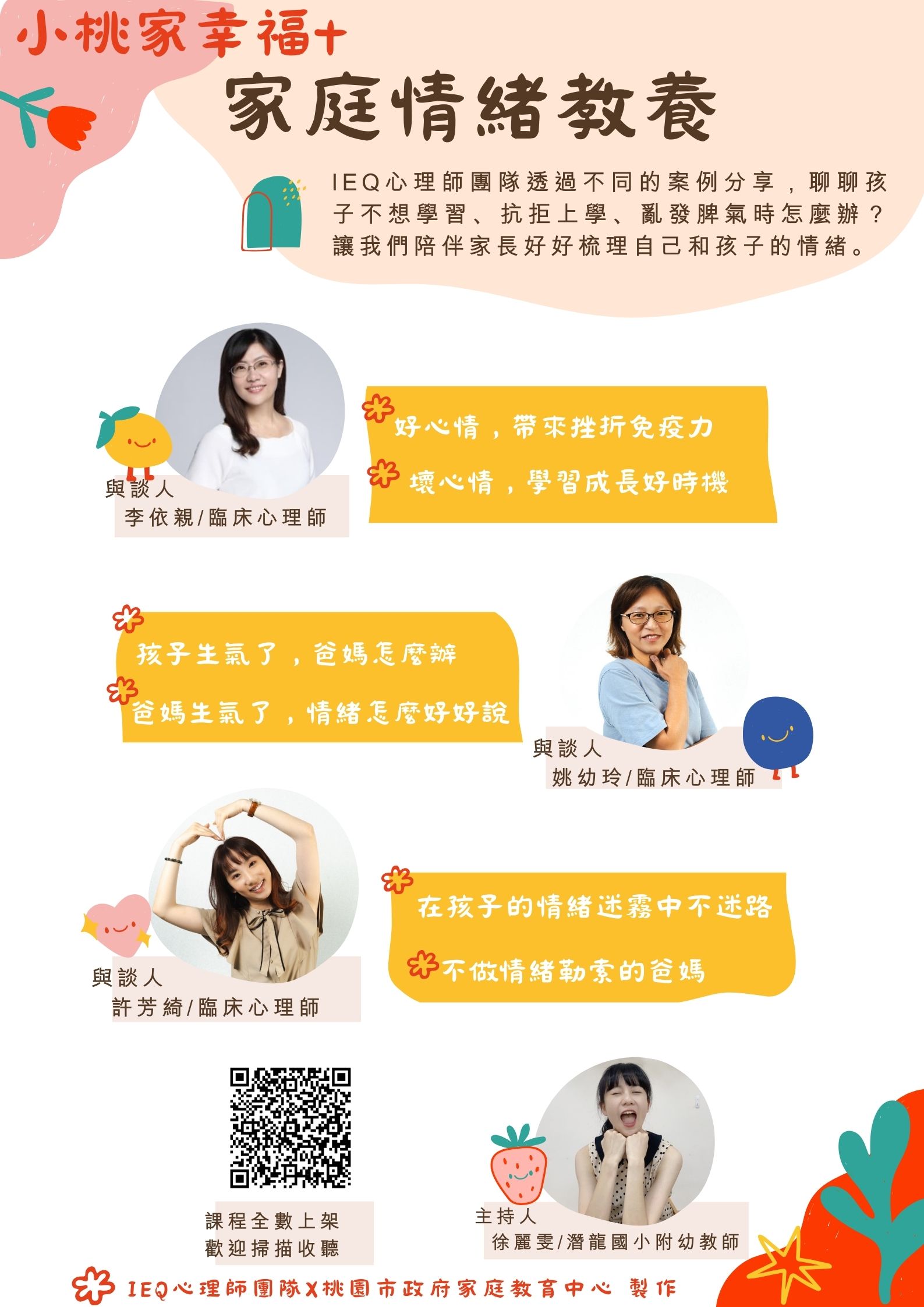 轉知:桃園市政府家庭教育中心「家庭情緒教養」相關課程