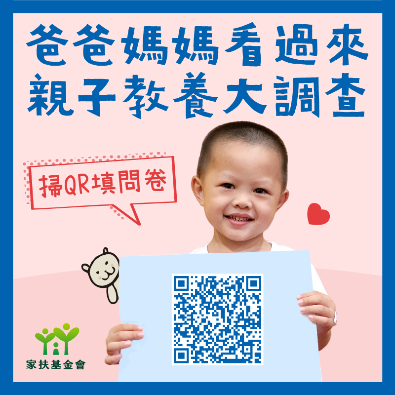 轉知:財團法人台灣兒童暨家庭扶助基金會「親子教養調查」調查問卷,邀請育有18歲以下兒少的家長填寫