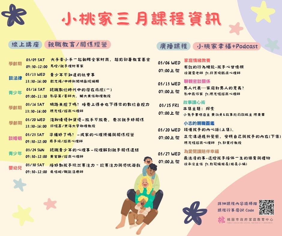 轉知:桃園市政府家庭教育中心「小桃家3月課程資訊」